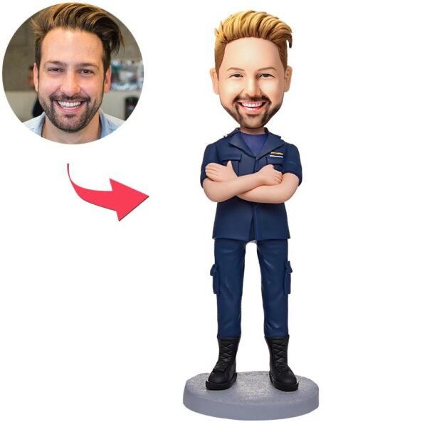 Blue Work Clothes Men Custom Bobblehead With Engraved Text